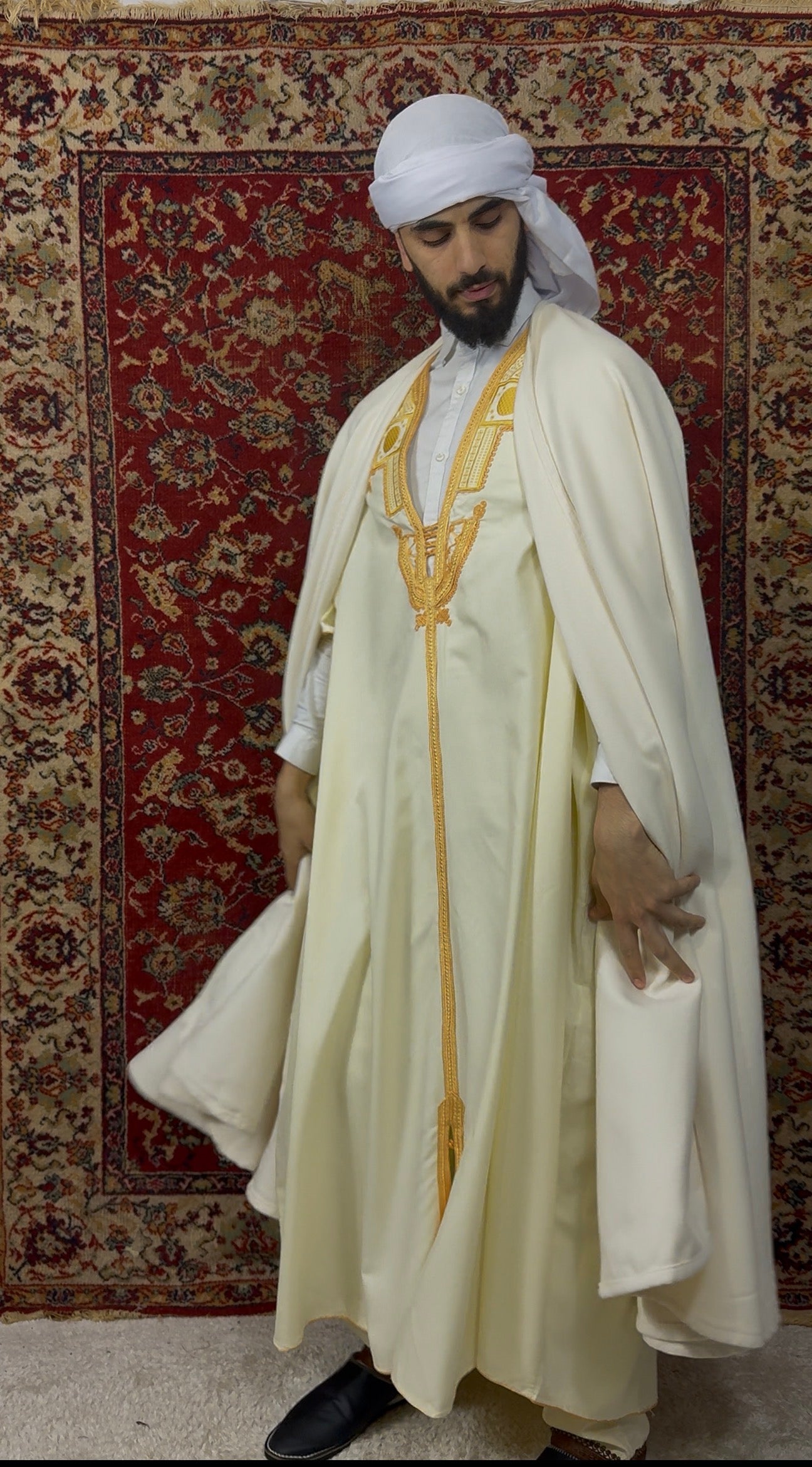 Sa coupe traditionnelle assure un tombé fluide et majestueux, fidèle à l’élégance du patrimoine algérien.