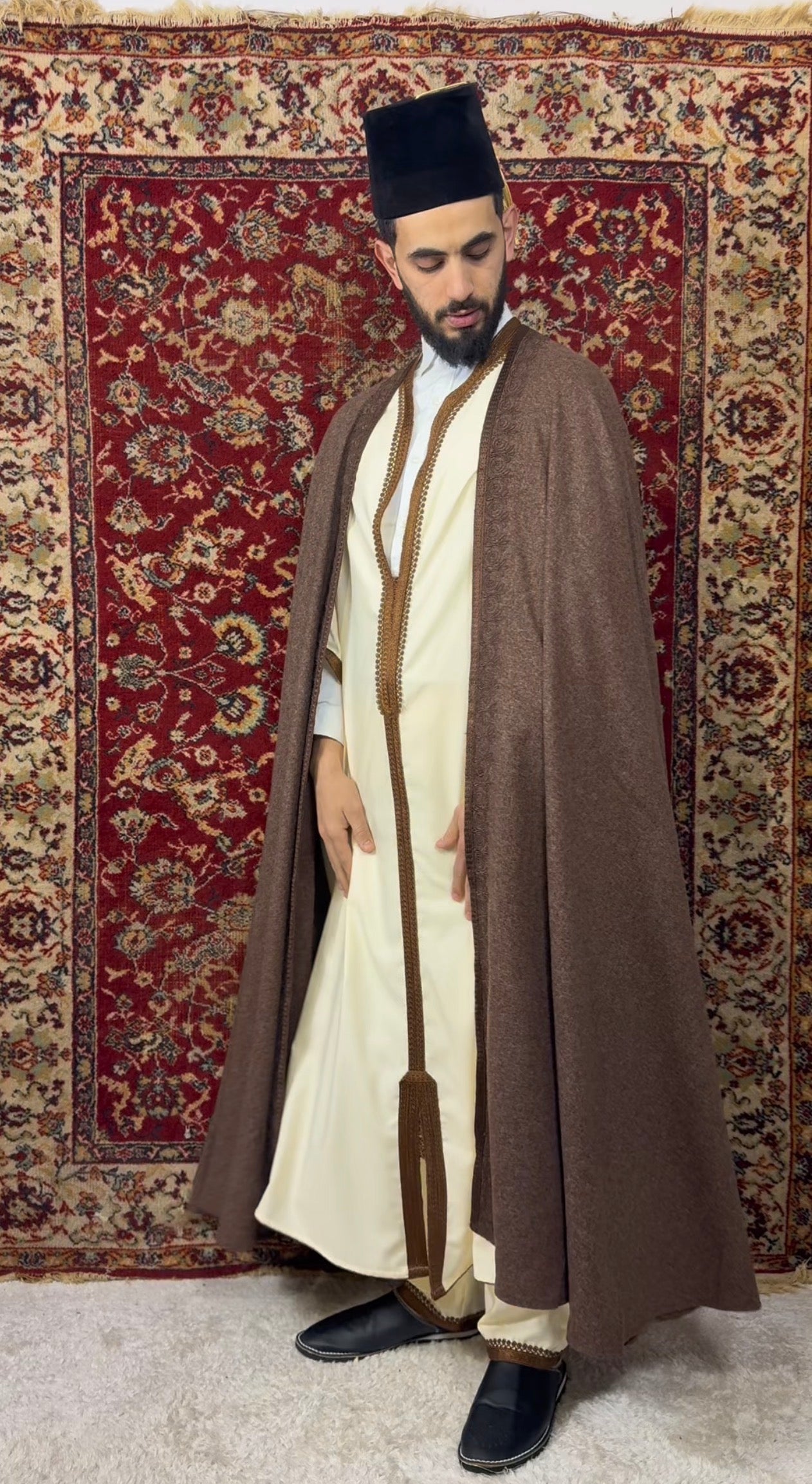 Ce barnous en laine de mouton et coton allie chaleur, confort et élégance. Sa couleur marron moucheté lui donne un style authentique et raffiné, parfait pour les mariages, fêtes et grandes occasions. Les broderies sont réalisées avec un grand soin, apportant une finition propre et distinguée qui met en valeur le savoir-faire traditionnel algérien.
