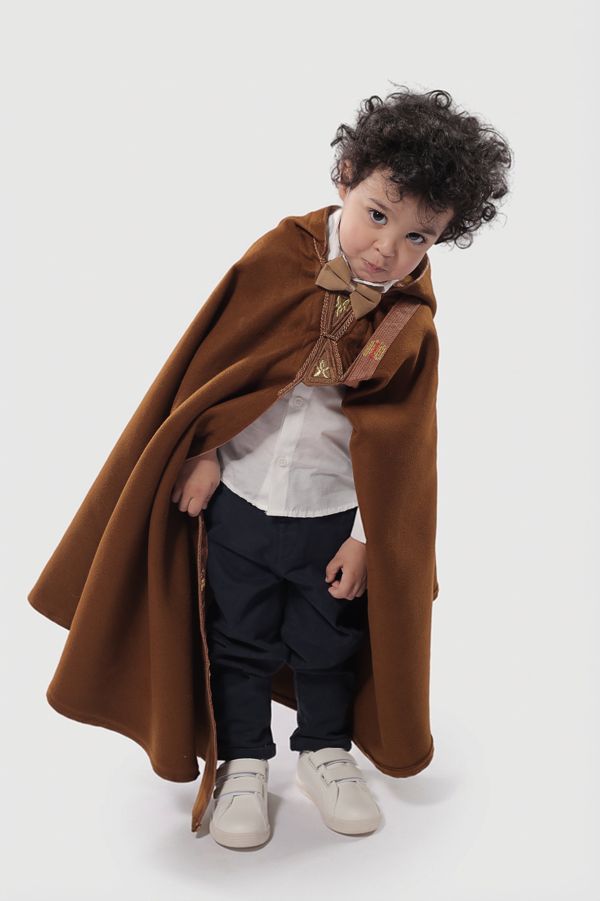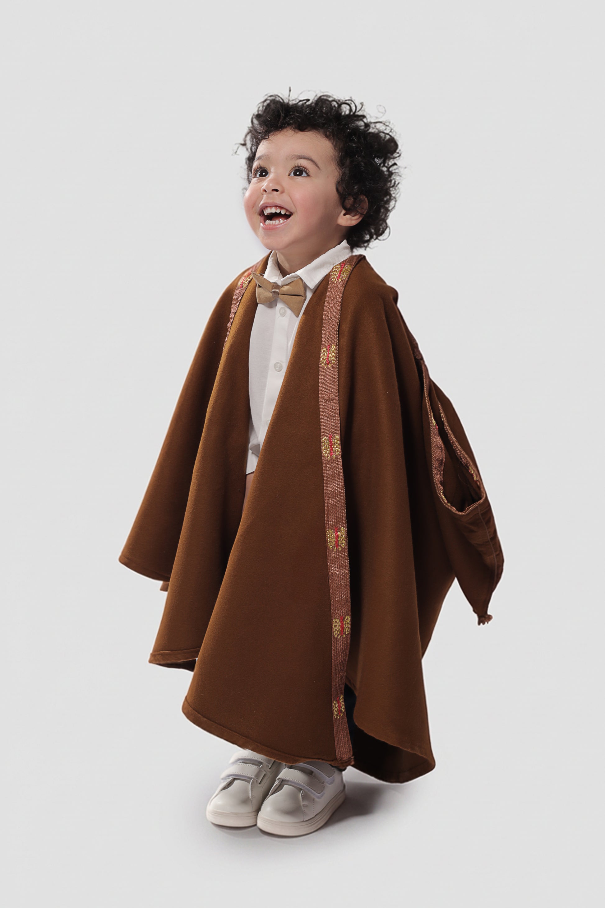 Offrez à votre enfant une tenue traditionnelle chaleureuse et élégante avec ce burnous marron en cachemire.