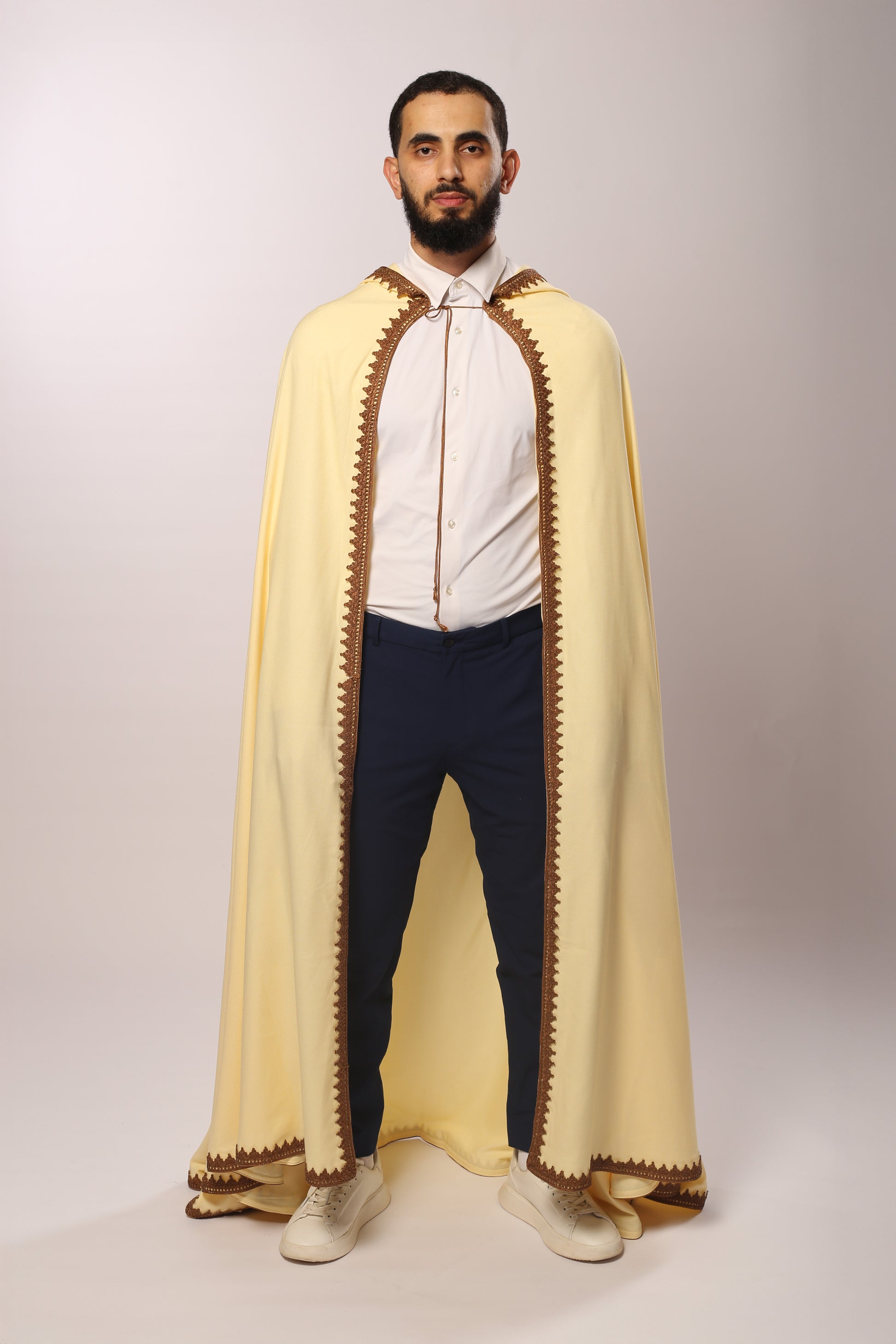 Barnous blanc cassé confectionné dans un tissu exceptionnellement doux, offrant un confort absolu et une tenue majestueuse. Orné de broderies marron raffinées, il incarne l’authenticité et l’élégance du patrimoine algérien. Sa coupe noble et ses finitions soignées en font une pièce idéale pour les mariages, cérémonies et grandes occasions, alliant tradition, prestige et modernité.