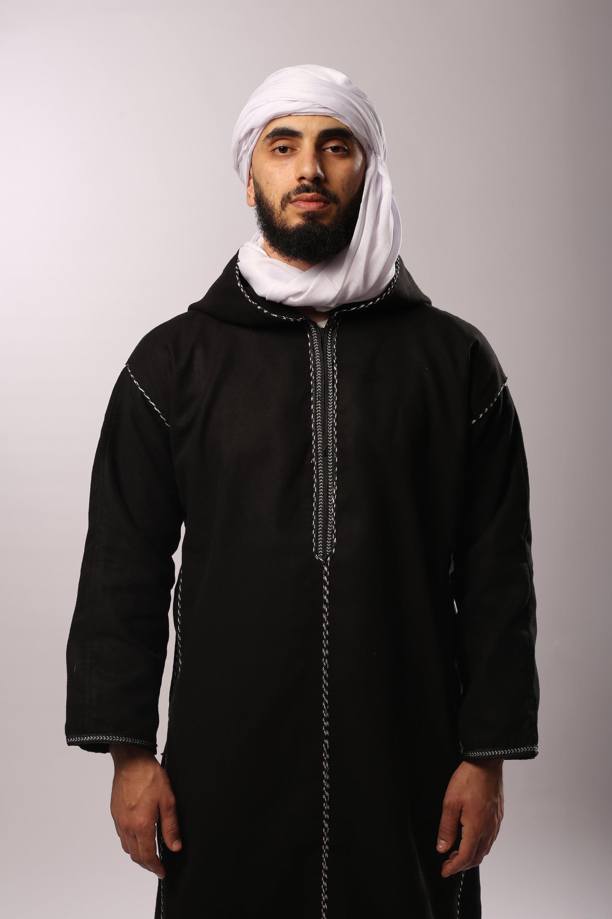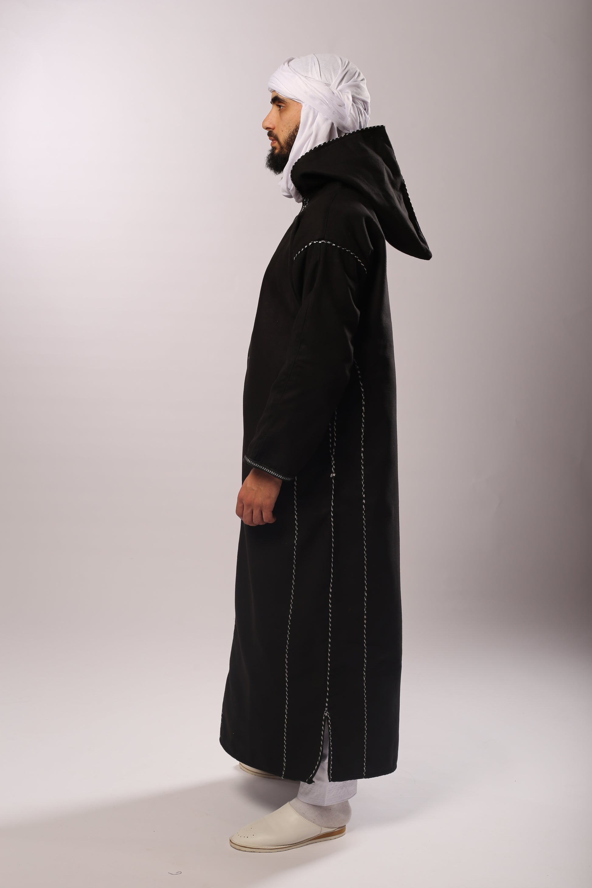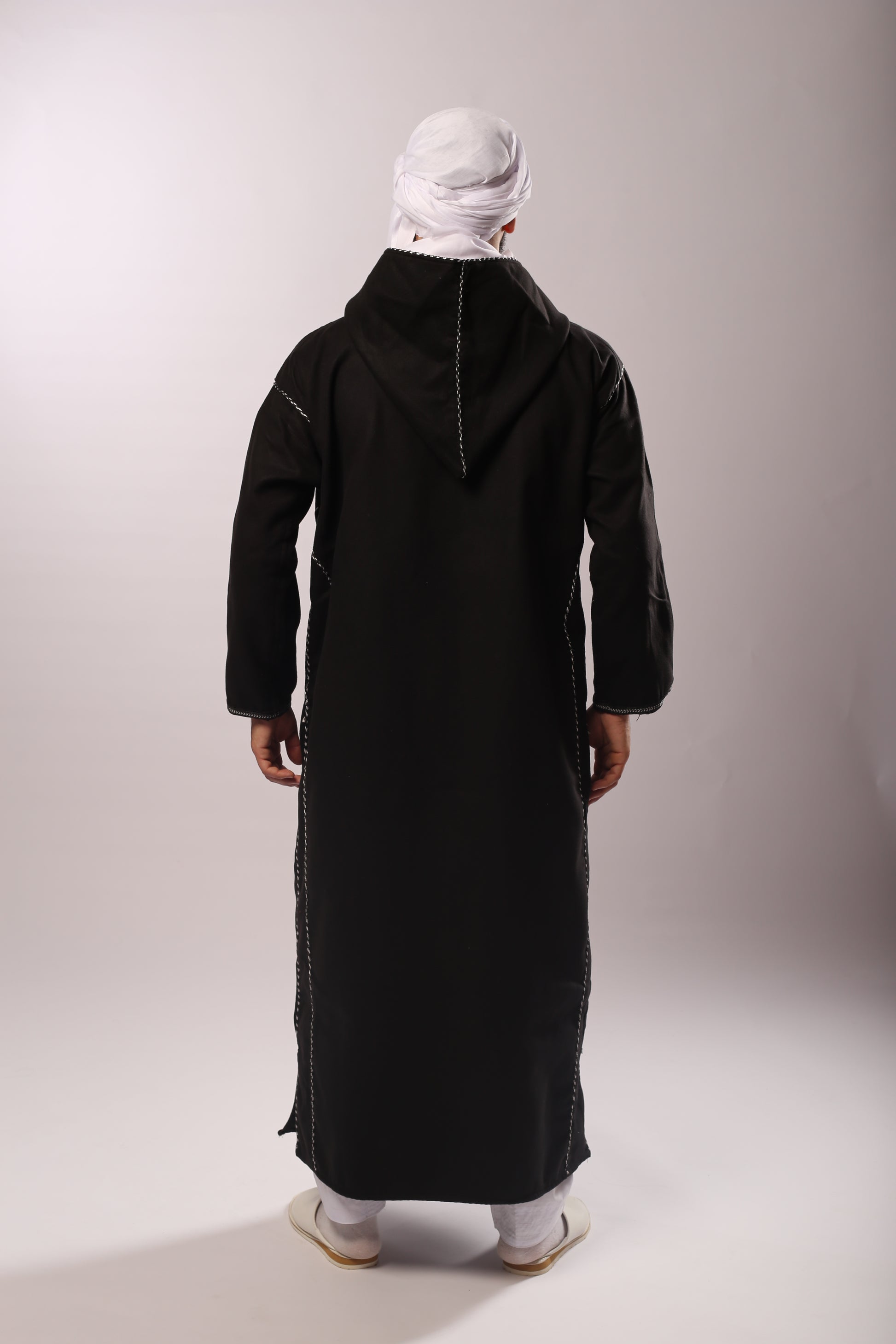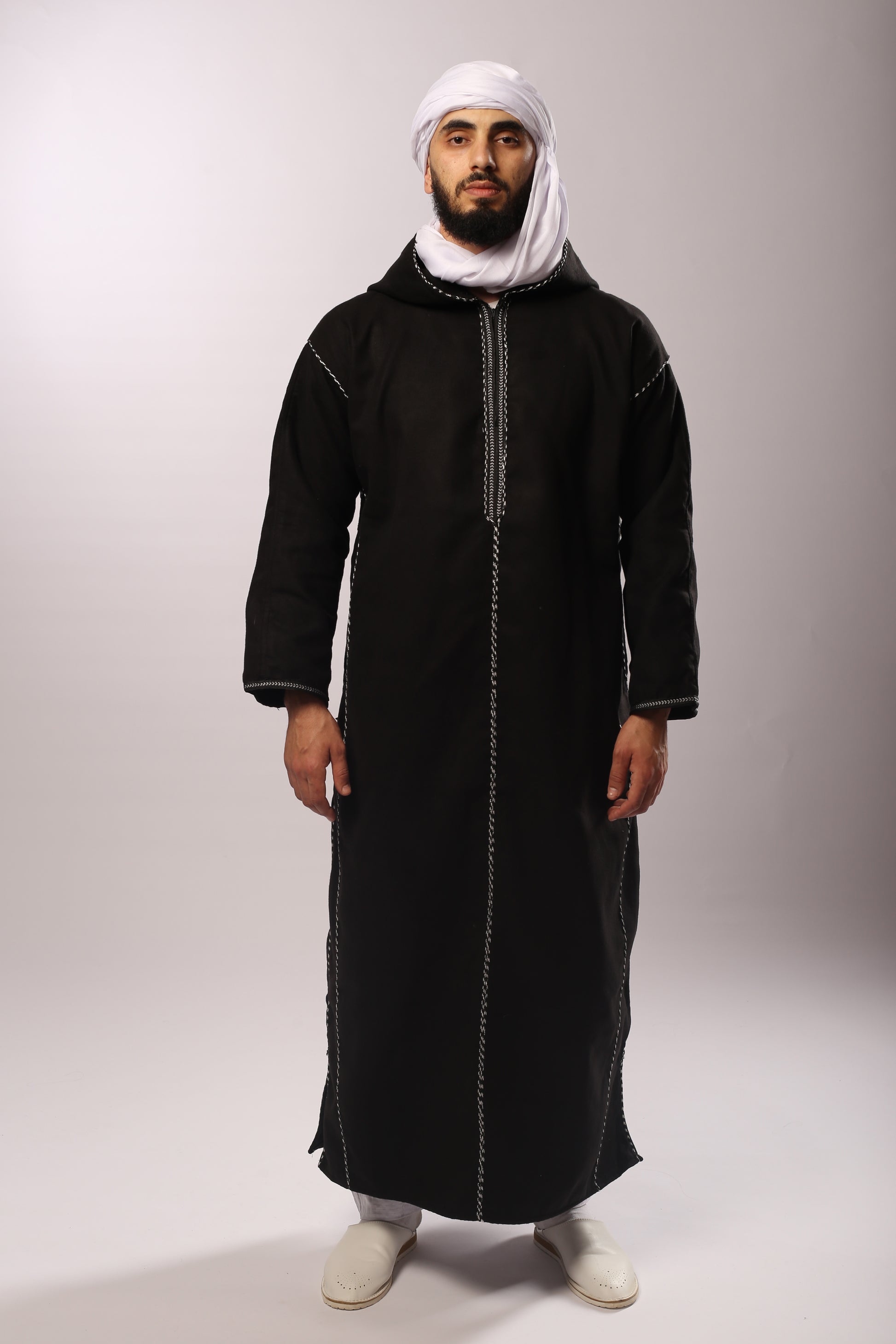 Découvrez le charme intemporel de cette kachabia en cachemire noir, symbole de raffinement et de prestige. Confectionnée dans un cachemire doux et chaud, elle offre un confort exceptionnel tout en préservant l’authenticité du vêtement traditionnel algérien.