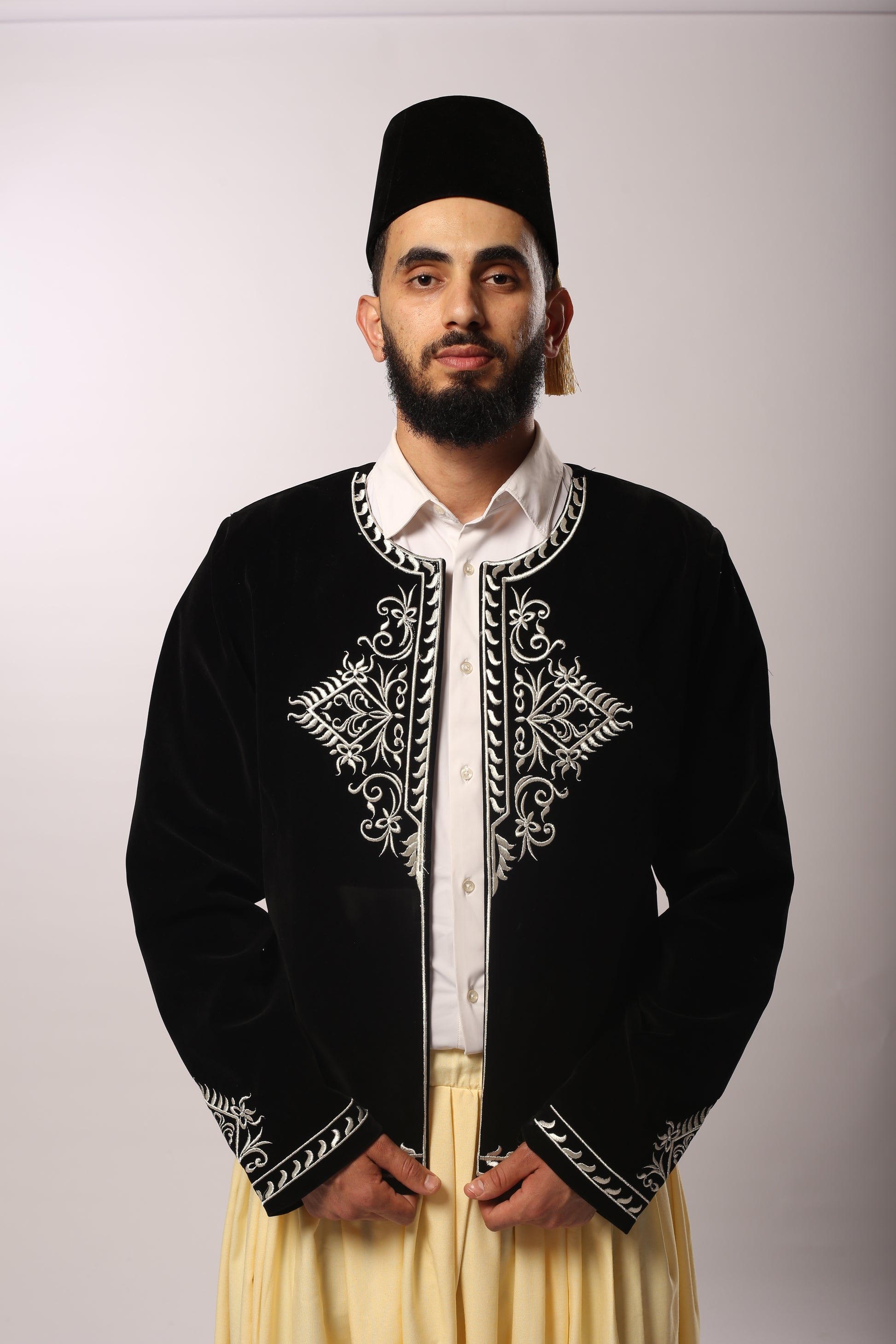 Découvrez l’élégance intemporelle avec notre veste Jabadouli ouverte en velours noir – El Djazayer. Conçue dans un velours doux et luxueux, cette veste s’ouvre délicatement sur l’avant pour un style raffiné et confortable. Ses broderies argentées minutieuses apportent une touche d’éclat et de sophistication, reflétant l’artisanat traditionnel algérien. Parfaite pour les mariages, fêtes ou occasions spéciales, cette pièce unique allie héritage culturel et élégance moderne.