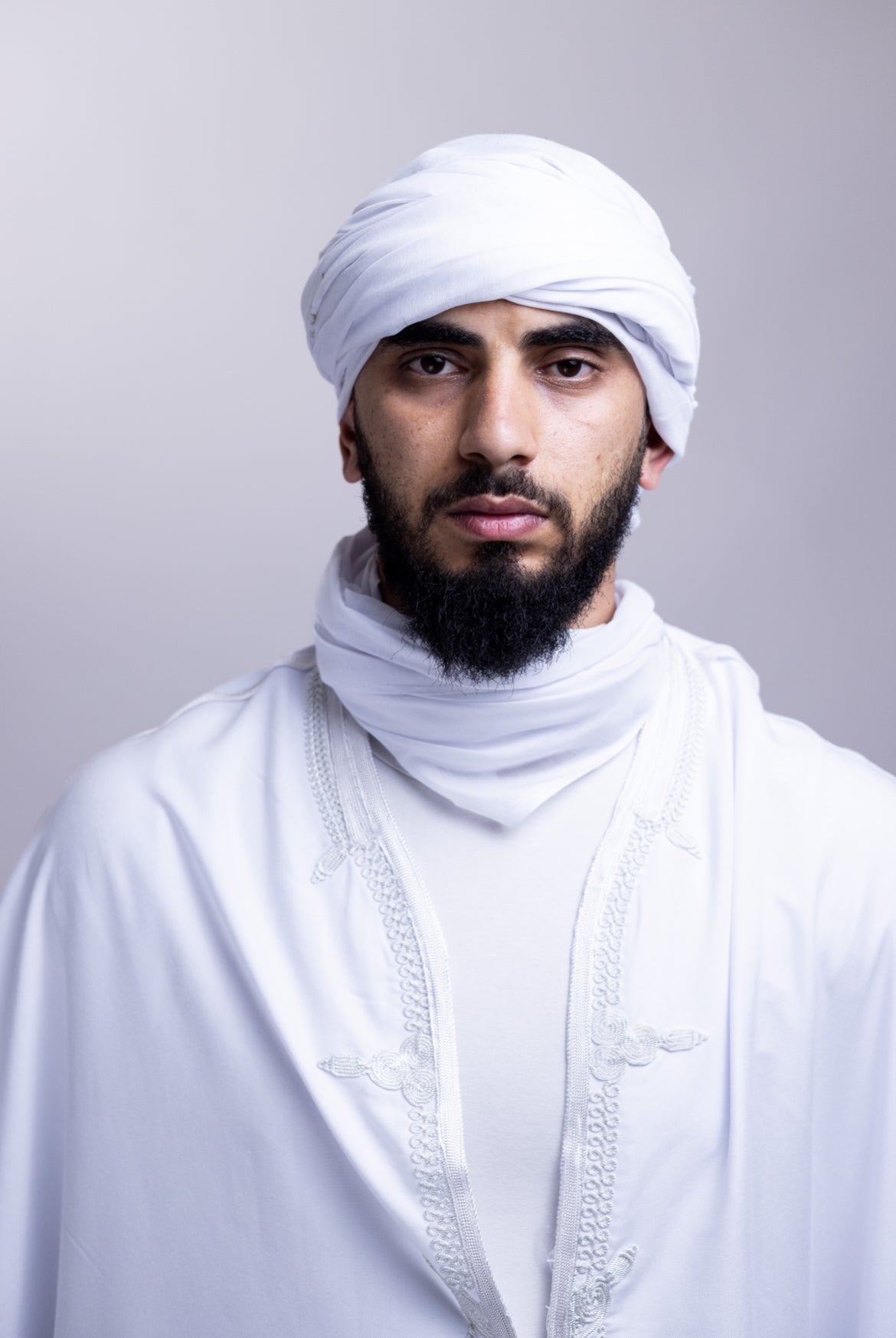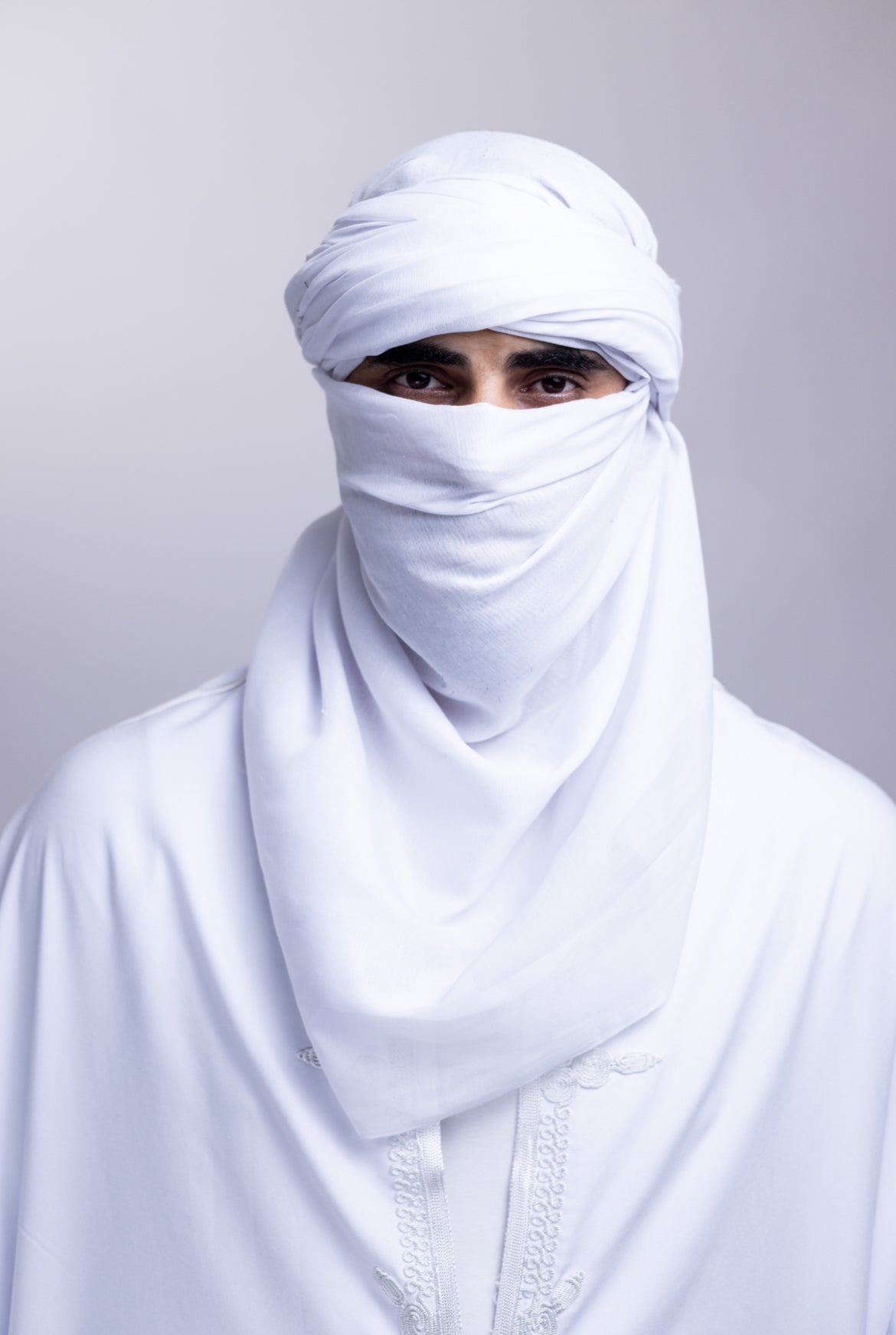 Le chèche est un tissu en coton d’environ 4 mètres de long, porté par les hommes en Algérie, notamment par les Touaregs. Il protège du soleil, du vent et du sable. Enroulé autour de la tête et du visage, il peut servir de turban ou de voile facial (tagelmust). C’est un accessoire pratique et un symbole culturel important.